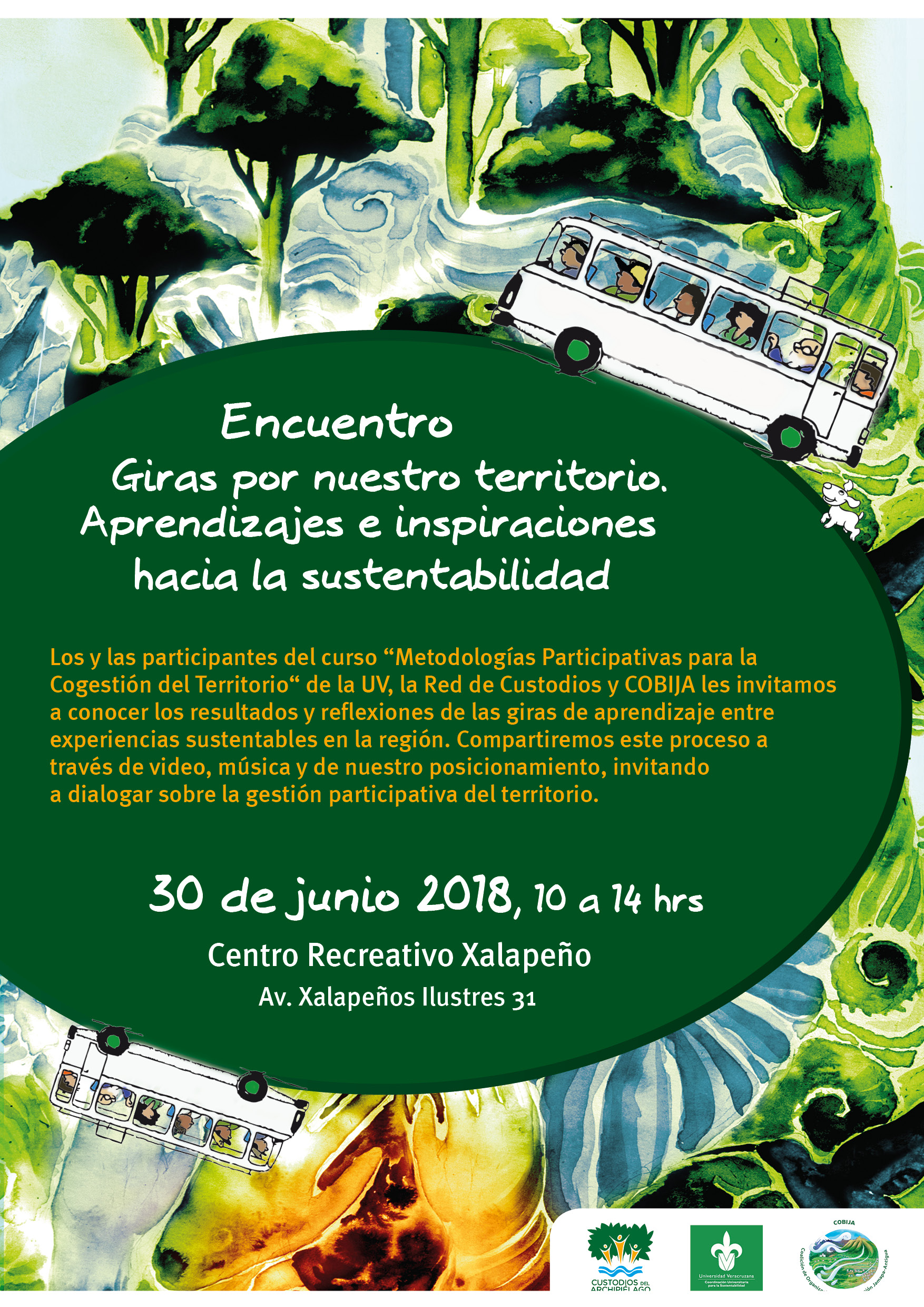 Con mucha alegría les invitamos a participar en el Encuentro „Giras por nuestro territorio. Aprendizajes e inspiraciones hacia la sustentabilidad“ que celebraremos este sábado 30 de junio de 10 a 14 hrs en el Centro Recreativo Xalapeño (Av. Xalapeños Ilustres 31, Centro Xalapa, Ver.).